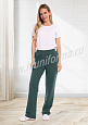 Брюки прямые трикотажные на эластичном поясе, на передних половинках расположены верхние боковые карманы с наклонным входом. Брюки выполнены из приятного износостойкого трикотажного полотна, имеют удобную высокую посадку, что обеспечивает свободу движений и комфорт при носке.